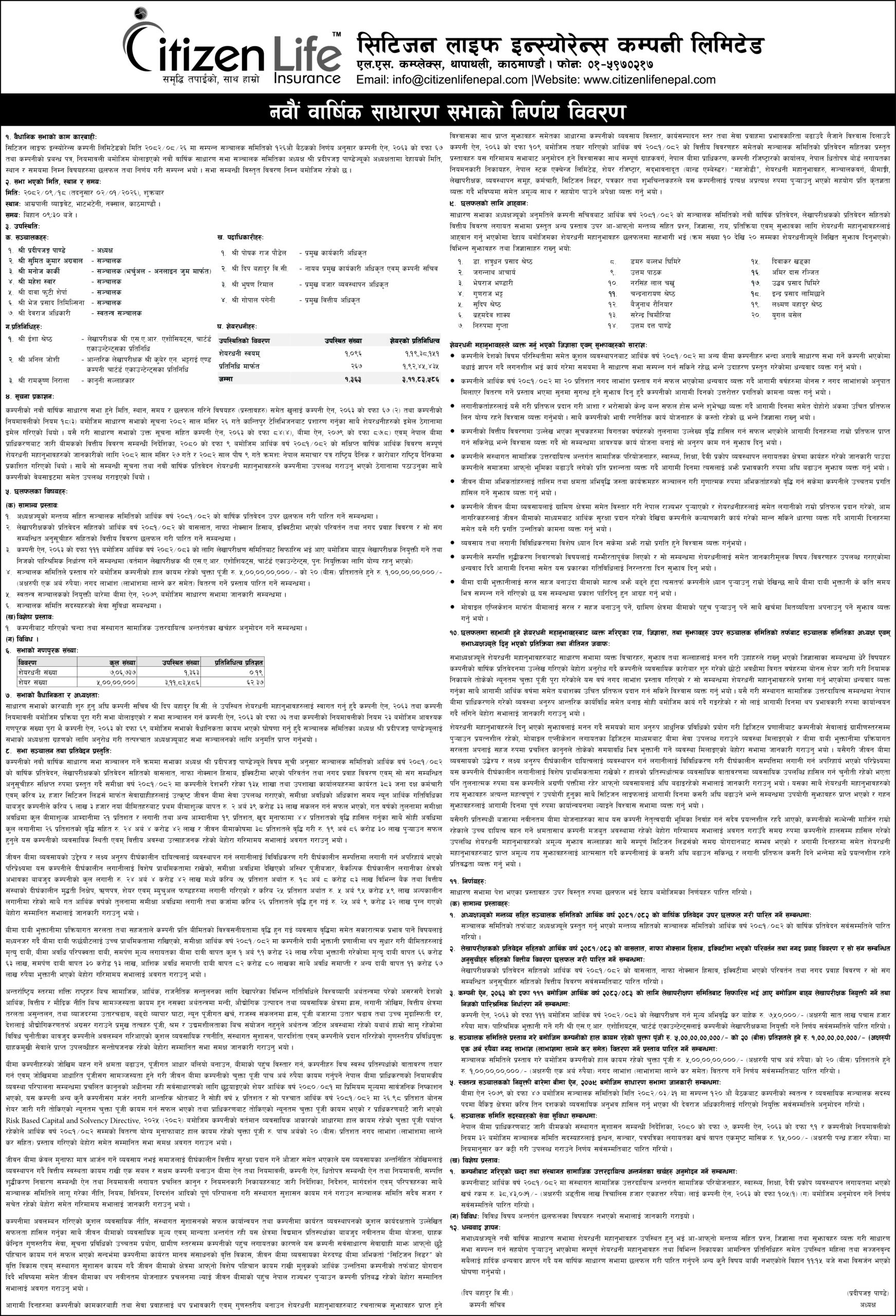 CitizenLife is one of the fastest growing life insurance companies in Nepal. It started its operations on October 19, 2017 (Kartik 02, 2074) after Nepal Insurance Authority, awarded it the operation license on August 23, 2017 (Bhadra 07, 2074). ....